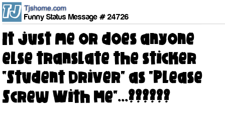 X is it just me or does anyone else translate the sticker "Student Driver" as "Please Screw With Me"...??????