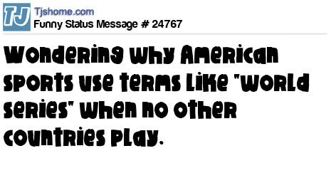 X is wondering why American sports use terms like "world series" when no other countries play.