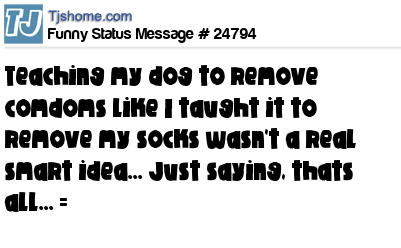X teaching my dog to remove comdoms like I taught it to remove my socks wasn't a real smart idea... Just saying, thats all... =\