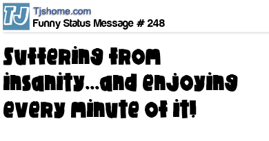 I think what u were trying to say is "isn't suffering from insanity...Im enjoying every minute of it!" Those who are enjoying insanity are not really suffering from it but nice try.