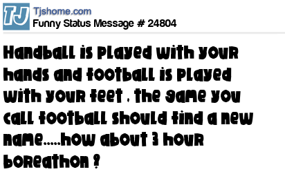 X says handball is played with your hands and football is played with your feet , the game you call football should find a new name.....how about 3 hour boreathon ?