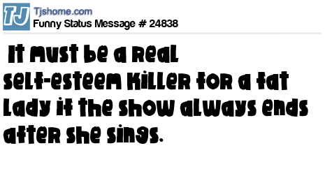 X   It must be a real self-esteem killer for a fat lady if the show always ends after she sings.