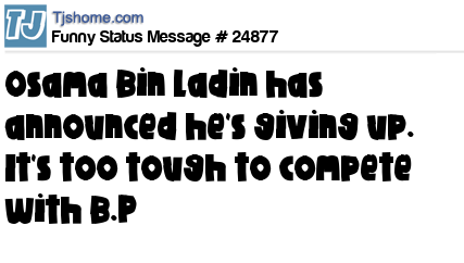 X is Osama Bin Ladin has announced he's giving up. It's too tough to compete with B.P