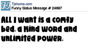 - # 24014 I think that all I want is a warm bed, a kind word and unlimited power.