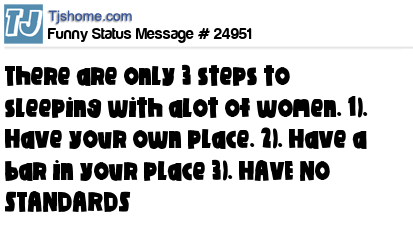 X There are only 3 steps to sleeping with alot of women. 1). Have your own place. 2). Have a bar in your place 3). HAVE NO STANDARDS