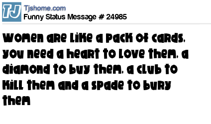 X Women are like a pack of cards, you need a heart to love them, a diamond to buy them, a club to kill them and a spade to bury them