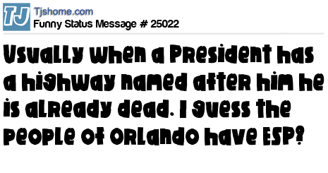 X says Usually when a President has a highway named after him he is already dead. I guess the people of Orlando have ESP?