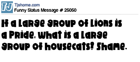 X If a large group of lions is a Pride, what is a large group of housecats? Shame.