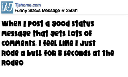 X  When I post a good status message that gets lots of comments, I feel like I just rode a bull for 8 seconds at the rodeo