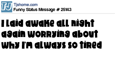 - # 102175 My day starts backwards... I wake up tired and I go to bed wide awake.