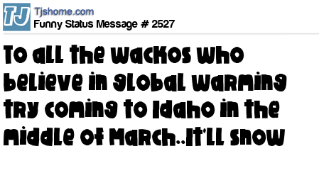 X says to all the wackos who believe in global warming try coming to Idaho in the middle of March..It'll snow