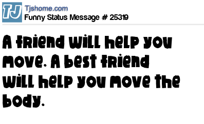 - # 34832 “A friend is someone who will help you move. A real friend is someone who will help you move a body.”