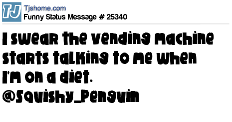 X is I swear the vending machine starts talking to me when I'm on a diet. @Squishy_Penguin