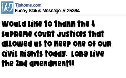 X would like to thank the 5 supreme court justices that allowed us to keep one of our civil rights today. Long live the 2nd amendment!!