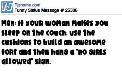 - # 145457 Men: if your woman makes you sleep on the couch, use the cushions to build an awesome fort and then hang a “no girls allowed” sign