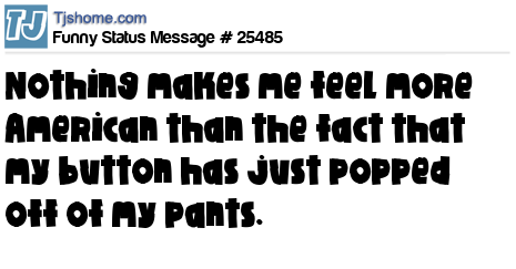 X Nothing makes me feel more American than the fact that my button has just popped off of my pants.