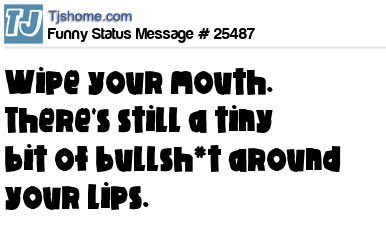 - # 64121 aww. you need to wipe your mouth sweetheart, you've got some bull ish on your lips.