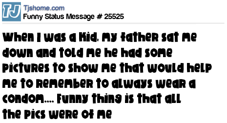 - # 153473 When I was younger my dad showed me pictures of the importance of safe sex. The funny thing is, they were all pictures of me.