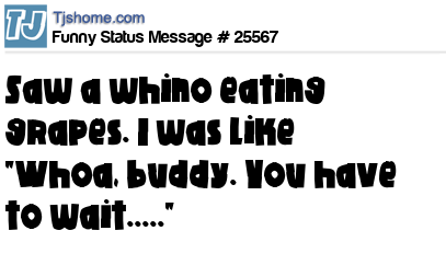 X saw a whino eating grapes. I was like "Whoa, buddy. You have to wait....."
