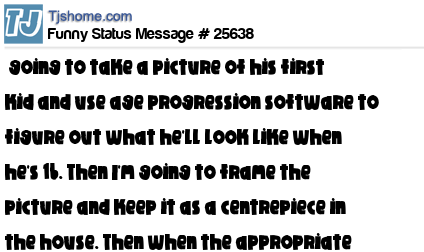 X going to take a picture of his first kid and use age progression software to figure out what he'll look like when he's 16. Then I'm going to frame the picture and keep it as a centrepiece in the house. Then when the appropriate time comes and he realiz