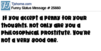 X If you accept a penny for your thoughts, not only are you a philosophical prostitute. You're not a very good one.