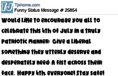 X would like to encourage you all to celebrate this 4th of July in a truly patriotic manner: Give a liberal something they utterly deserve and desperately need: A fist across their face. Happy 4th, everyone! Stay safe!