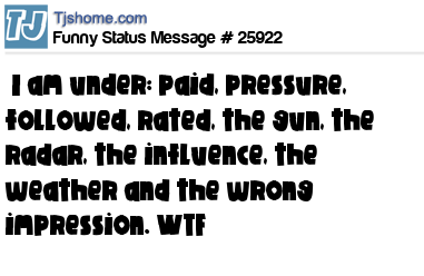 X I am under: paid, pressure, followed, rated, the gun, the radar, the influence, the weather and the wrong impression. WTF
