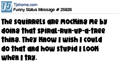 X The squirrels are mocking me by doing that spiral-run-up-a-tree thing. They know I wish I could do that and how stupid I look when I try.