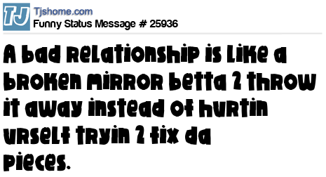X  a bad relationship is like a broken mirror betta 2 throw it away instead of hurtin urself tryin 2 fix da pieces.