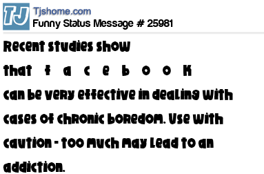 X says Recent studies show that┣▇f͟͞a͟͞c͟͞e͟͞b͟͞o͟͞o͟͞k͟͞▇▇═─ can be very effective in dealing with cases of chronic boredom. Use with caution - too much may lead to an addiction.