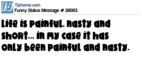 X Life is painful, nasty and short... in my case it has only been painful and nasty.
