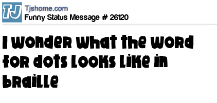 - # 88707 I'll never understand why the guy that invented braille didn't just put the dots in shape of the actual letters.