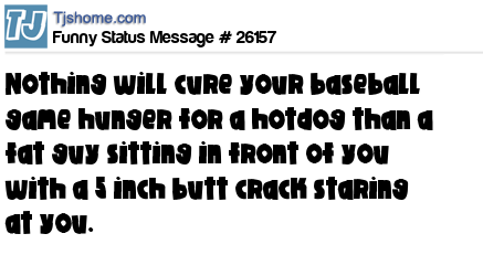 X is Nothing will cure your baseball game hunger for a hotdog than a fat guy sitting in front of you with a 5 inch butt crack staring at you.