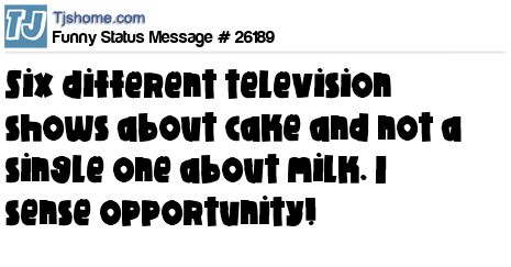 X says Six different television shows about cake and not a single one about milk. I sense opportunity!