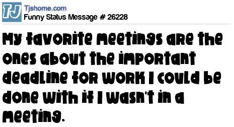 X My favorite meetings are the ones about the important deadline for work I could be done with if I wasn't in a meeting.