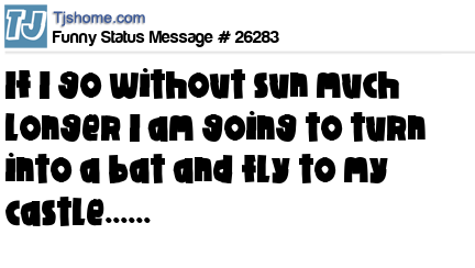 X If I go without sun much longer I am going to turn into a bat and fly to my castle......