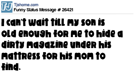 X I can't wait till my son is old enough for me to hide a dirty magazine under his mattress for his mom to find.