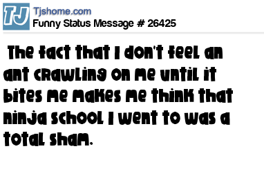 X The fact that I don't feel an ant crawling on me until it bites me makes me think that ninja school I went to was a total sham.