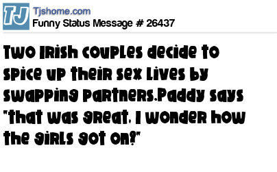 X Two Irish couples decide to spice up their sex lives by swapping partners.Paddy says "that was great, I wonder how the girls got on?"
