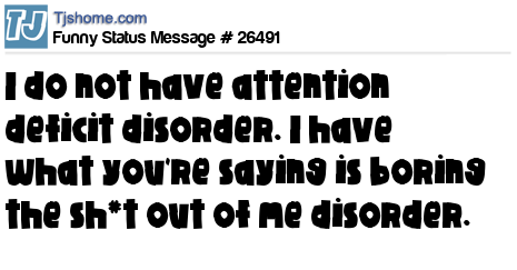 - # 26668 I do not have attention deficit disorder. I have what you're saying is boring the sh*t out of me disorder.
