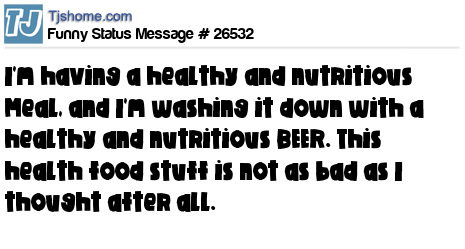 X is I'm having a healthy and nutritious Meal, and I'm washing it down with a healthy and nutritious BEER. This health food stuff is not as bad as I thought after all.