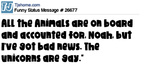 X is All the Animals are on board and accounted for, Noah, but I've got bad news. The unicorns are gay."