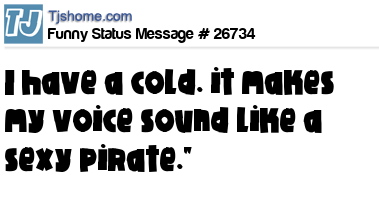 X is I have a cold. it makes my voice sound like a sexy pirate."