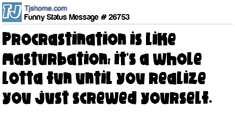 X Procrastination is like masturbation; it's a whole lotta fun until you realize you just screwed yourself.