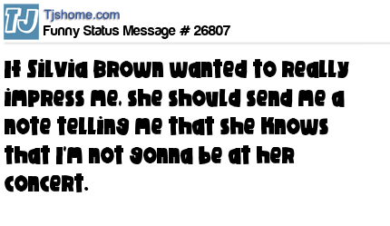 X says if Silvia Brown wanted to really impress me, she should send me a note telling me that she knows that I'm not gonna be at her concert.
