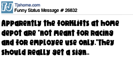 X Apparently the forklifts at home depot are "not meant for racing and for employee use only."They should really get a sign..