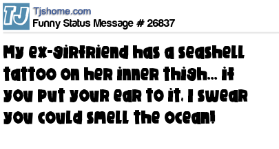 - # 119444 My ex-wife has a seashell tattoo on her inner thigh... if you put your ear to it, I swear you could smell the ocean!
