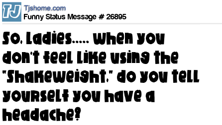 X So, ladies..... when you don't feel like using the "Shakeweight," do you tell yourself you have a headache?