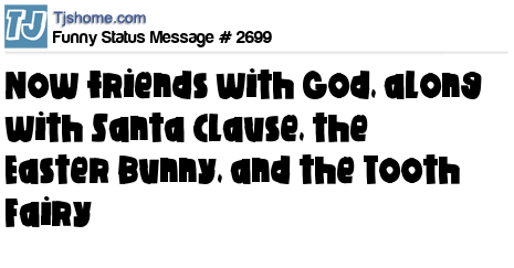 X is now friends with God, along with Santa Clause, the Easter Bunny, and the Tooth Fairy
