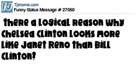 - # 25547 The Democrats finally came forward and ruined Chelsey Clinton's life with the news that Janet Reno is actually her father.